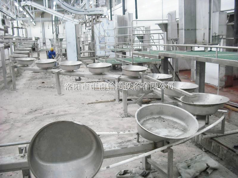同步衛(wèi)檢線可分為:落地式和懸掛式。將屠體的頭、腸、胃、心、肝與胴體同步對好檢驗,紅臟與白臟懸掛在衛(wèi)檢線上,按設定的速度與胴體加工線同步運行,由人工對內臟進行充分檢驗檢疫,這樣既保證了肉質的衛(wèi)生質量,又符合國家有關衛(wèi)生檢測標準。該設備運行平穩(wěn),同步準確,是屠宰加工中不可缺少的裝置之一。
